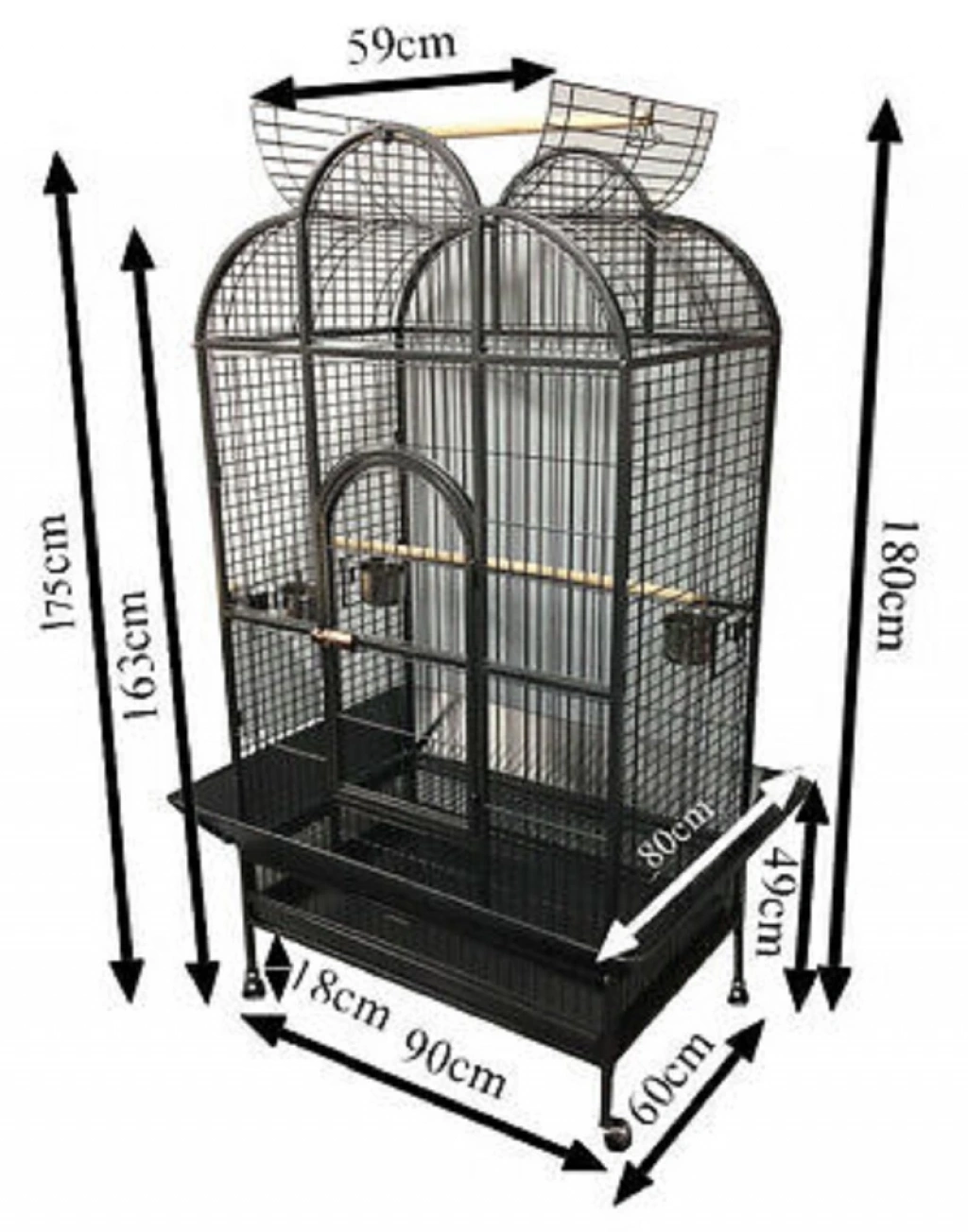 Kafes boyutu: 138 Y cm x 90 G cm x 60 D cm